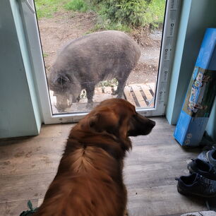 Fritz verhält sich in unserer Obhut immer positiv: mit den wechselnden Gassigehern, den neuen Bezugspersonen, mit den Besuchern des Tierpark (mache Besucher gehen auch einfach an ihm vorbei); er ist unkompliziert, wenn der Tierarzt/die Tierärztin vorbeikommt, und ist auch den Tieren im Tierpark wohlgesonnen.