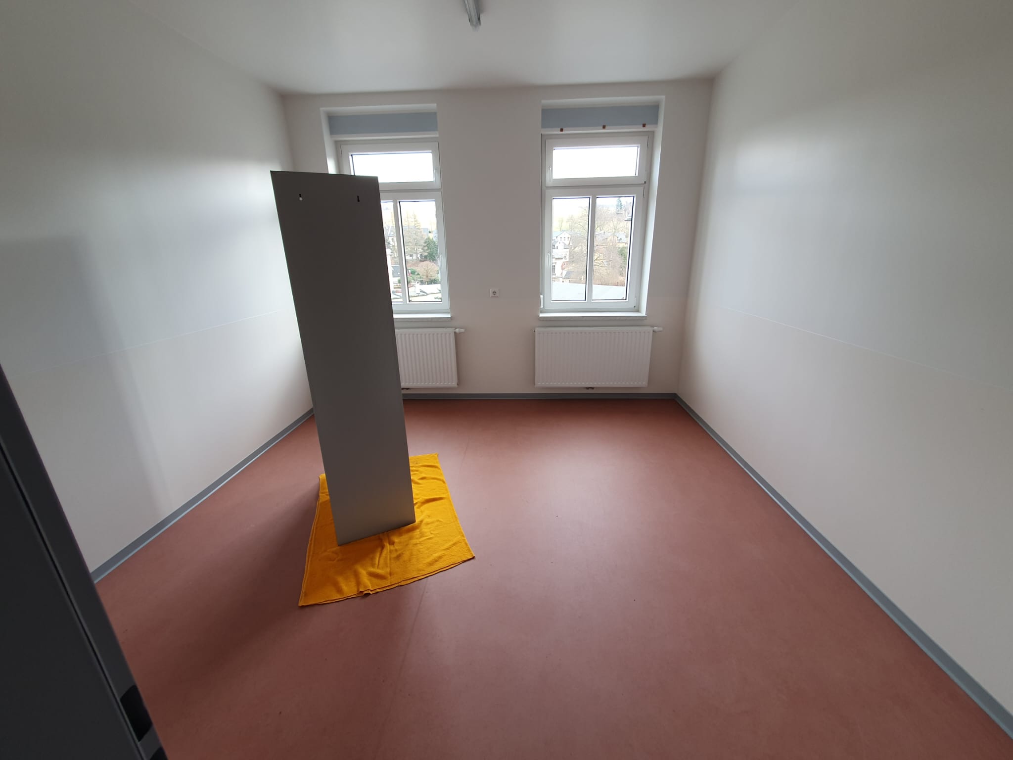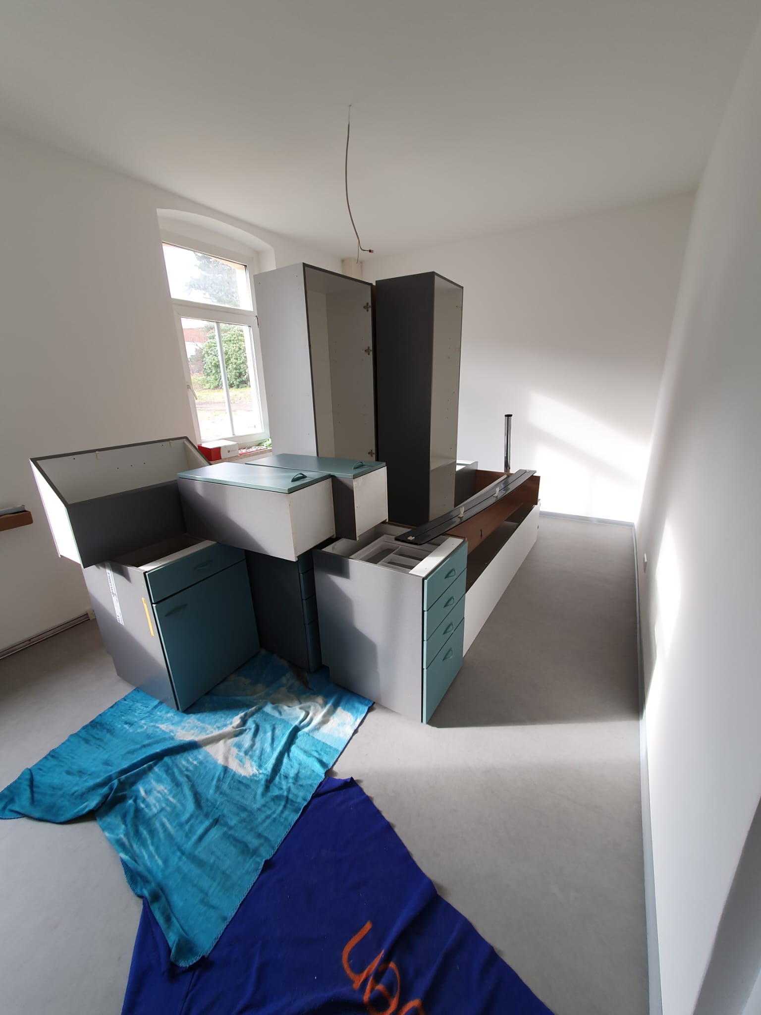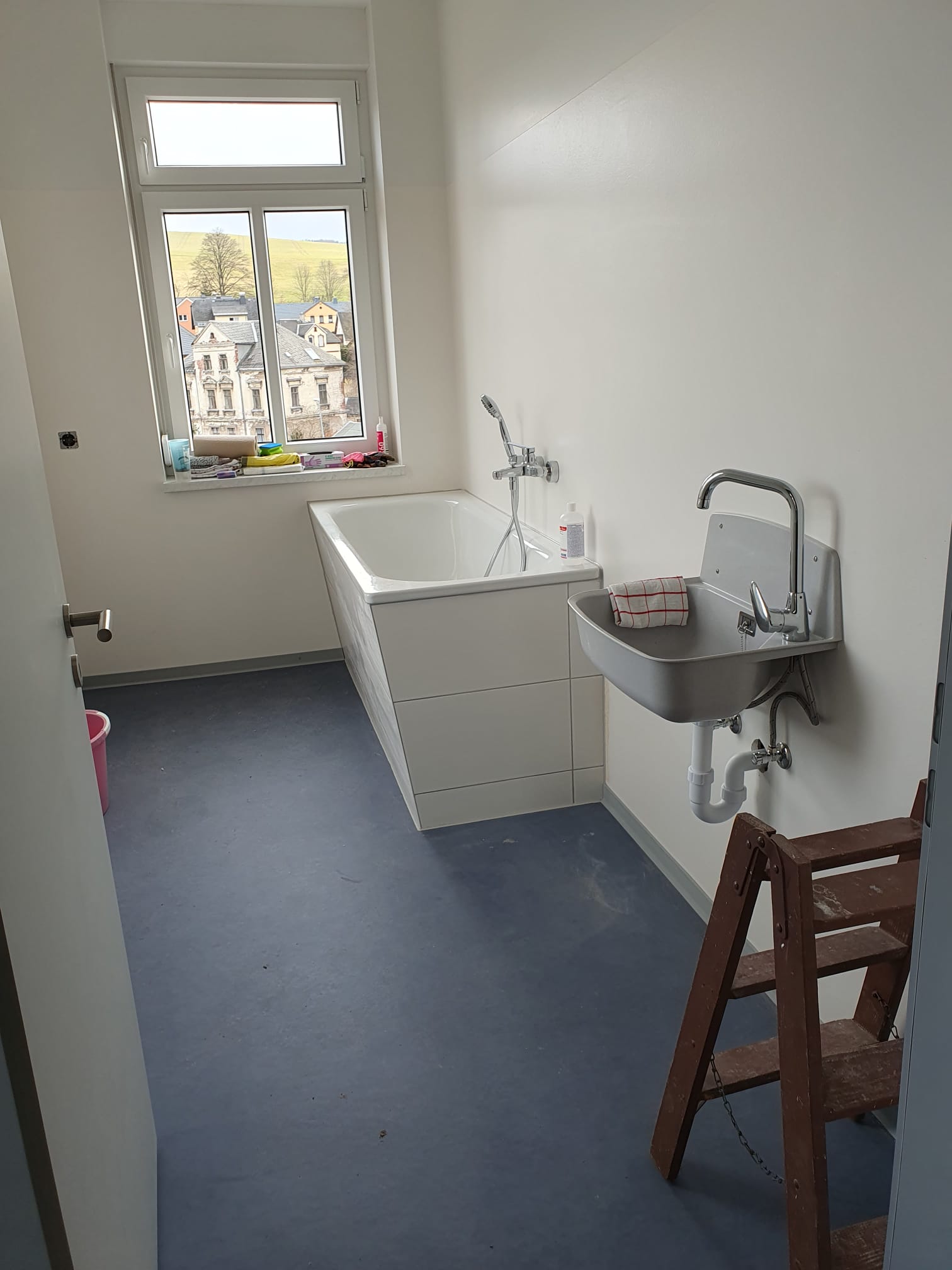 Im Erdgeschoss, der zukünftigen Personaletage, fehlen noch ein paar Quadratmeter Fußbodenbelag, ein paar Türen und ein Teil der Möblierung. Natürlich gibt es auch weiterhin viel zu tun, bis das ganze Objekt hübsch hergerichtet ist, mit dem langersehnten Umzug ist dann aber schon ein wesentlicher Schritt geschafft.